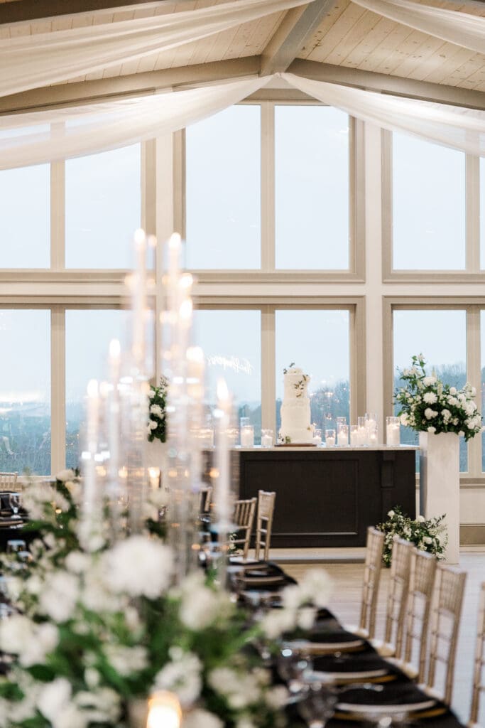 Brittany and Jake set out to create a wedding that felt timeless and deeply personal – something that I love! Their black, white, and gold palette set a luxurious tone from the very beginning, with floor-length black bridesmaid gowns and candlelit tablescapes adding an air of quiet romance to their celebration.